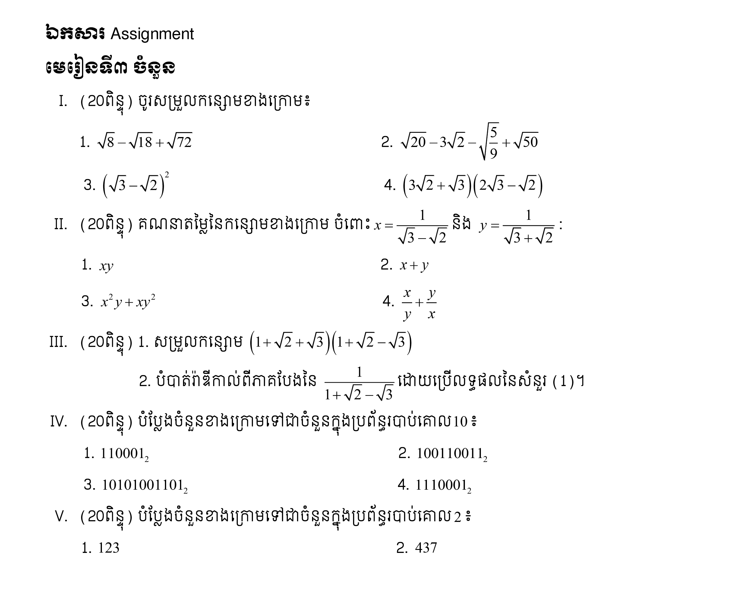 (ជ១) មេរៀនទី៣៖ (វីដេអូភាគ ១) កន្សោមរ៉ាឌីកាល់