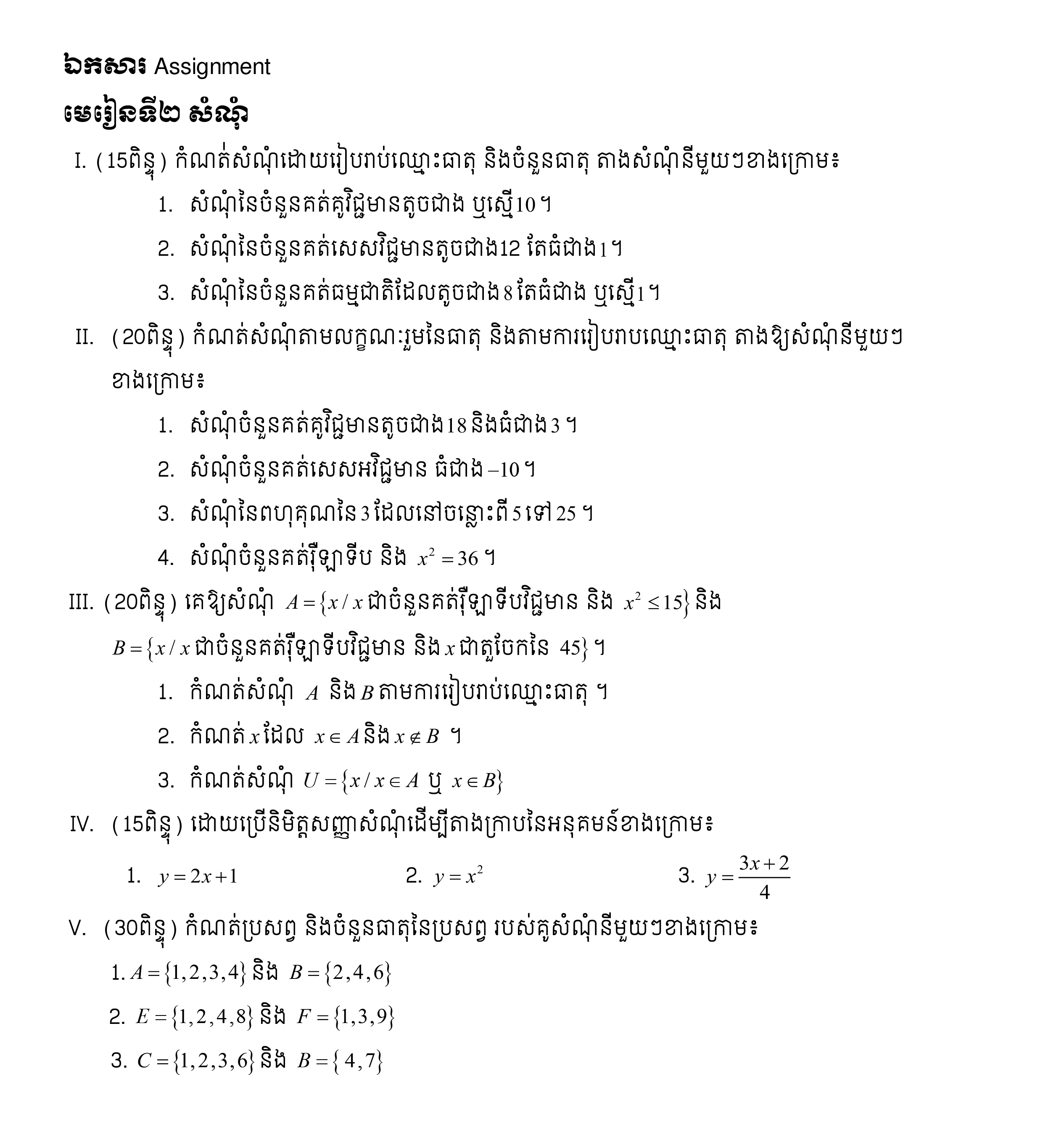 (ជ១) មេរៀនទី២៖ (កិច្ចការផ្ទះ) សំណុំ