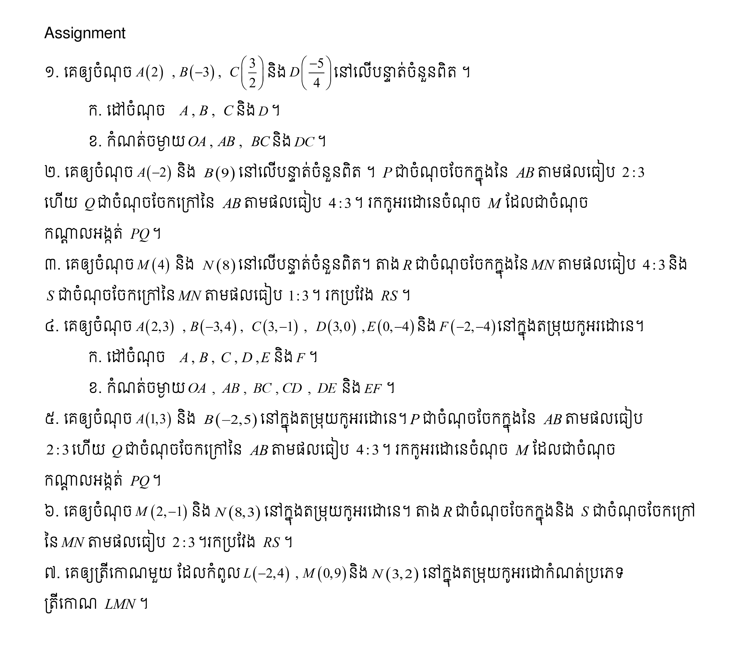 (ជ៤) មេរៀនទី១៖ (កិច្ចការផ្ទះ) កូអរដោនេនៃចំណុចនៅលើប្លង់
