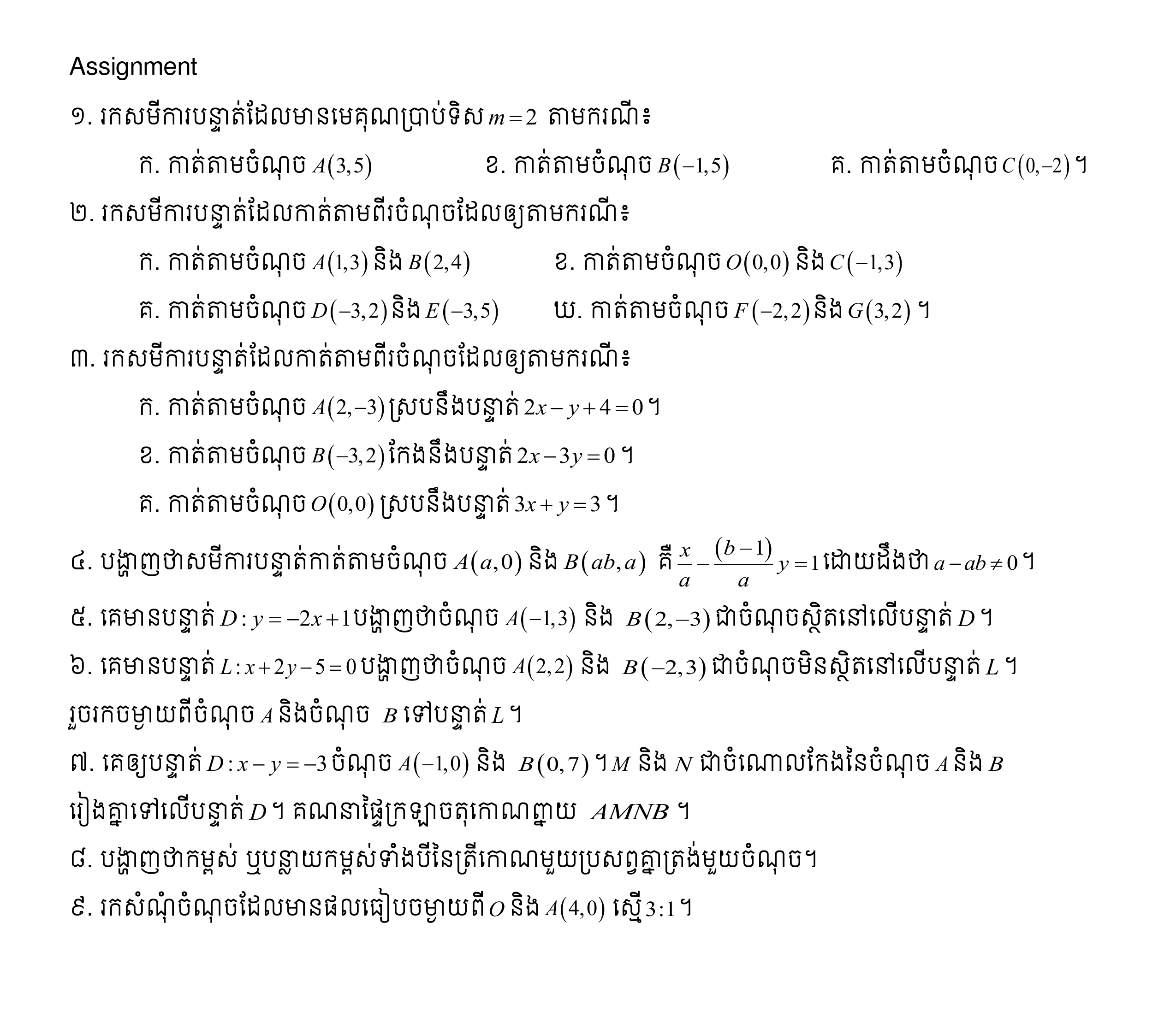 (ជ៤) មេរៀនទី២៖ (កិច្ចការផ្ទះ) សមីការបន្ទាត់