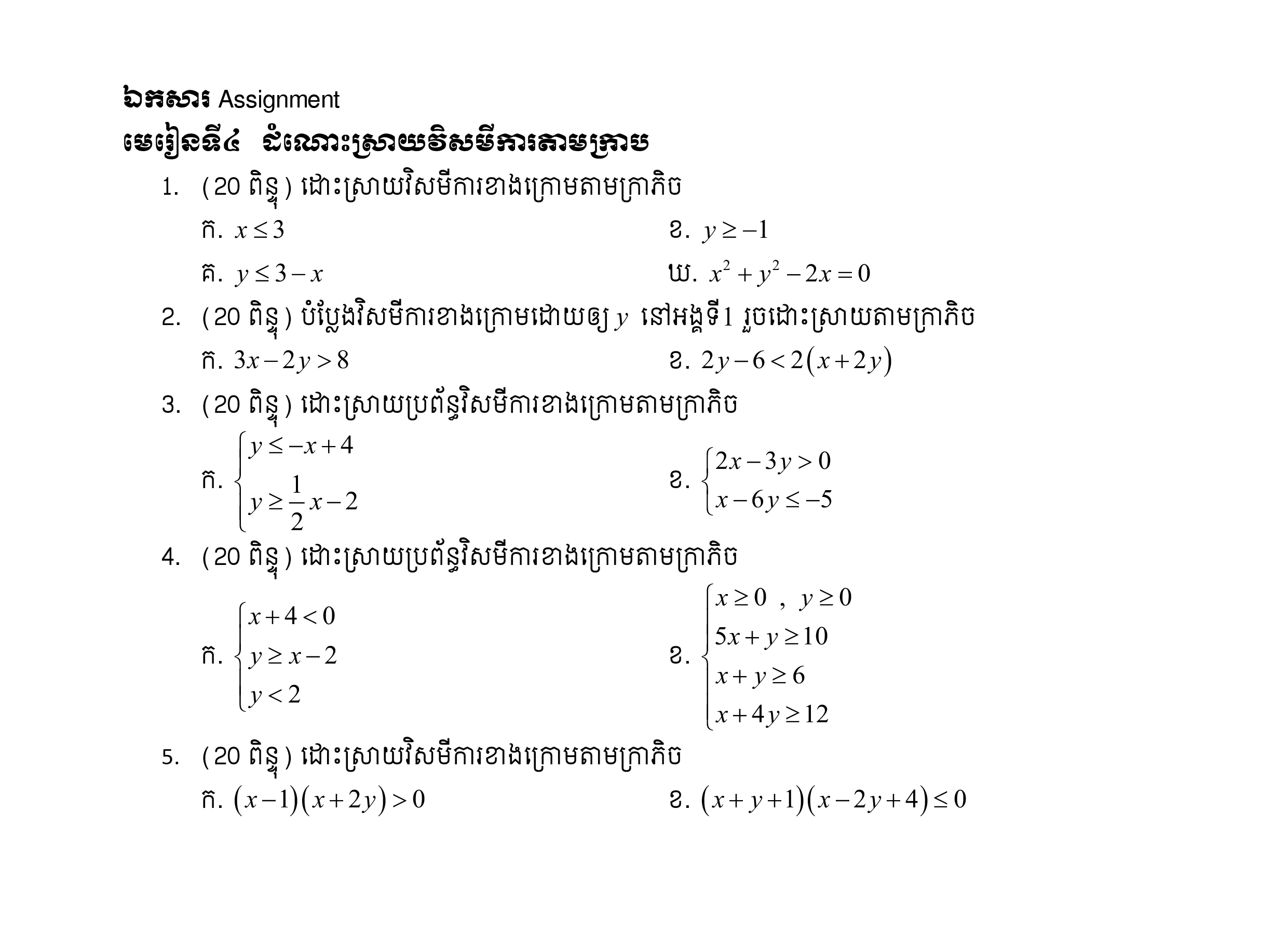 (ជ៣) មេរៀនទី២៖ (កិច្ចការផ្ទះ) ប្រព័ន្ធសមីការ និងសមីការដឺក្រេលំដាប់ខ្ពស់