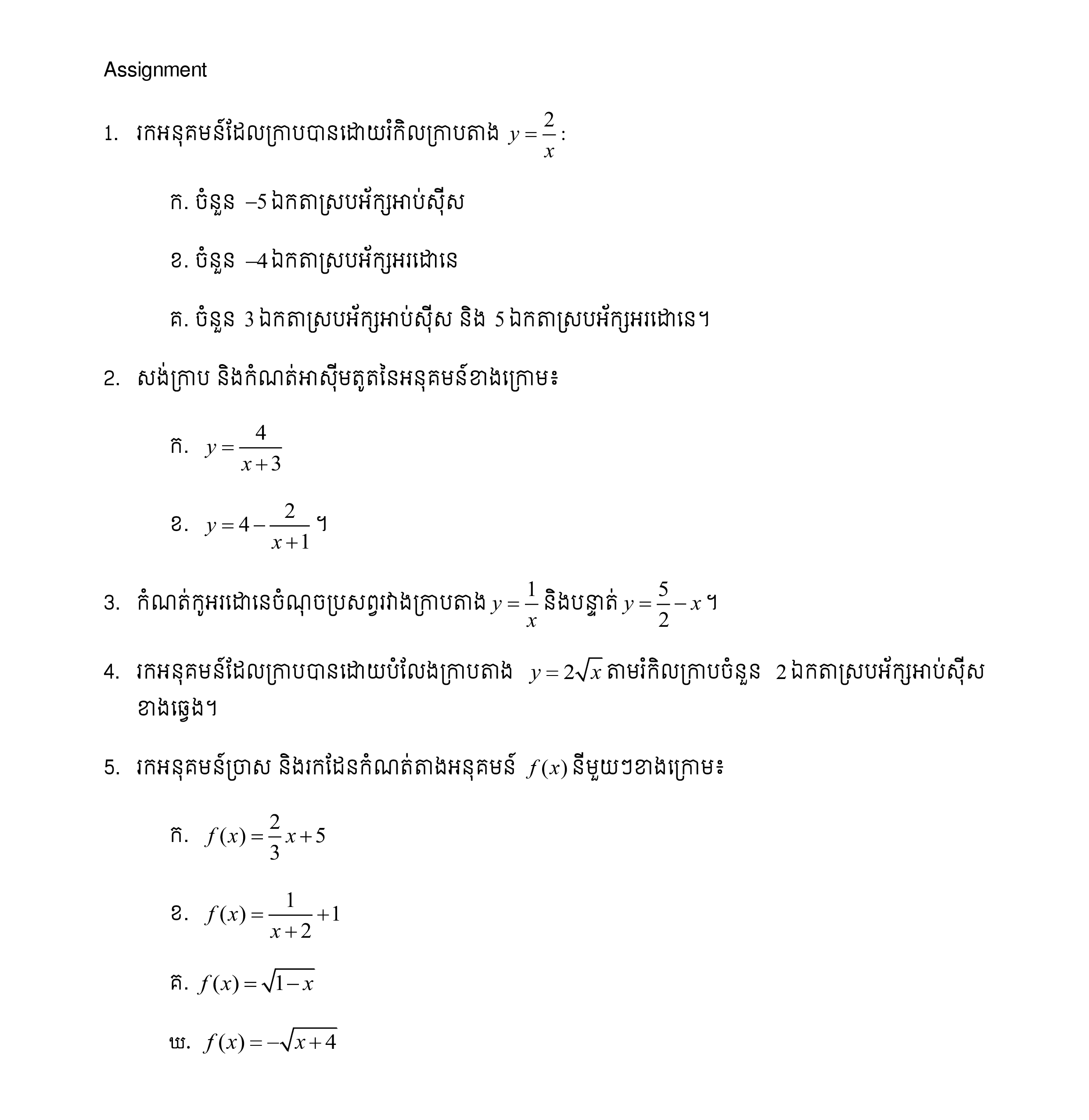 (ជ៥) មេរៀនទី៣៖ (កិច្ចការផ្ទះ) អនុគមន៍សនិទាន និងអនុគមន៍អសនិទាន