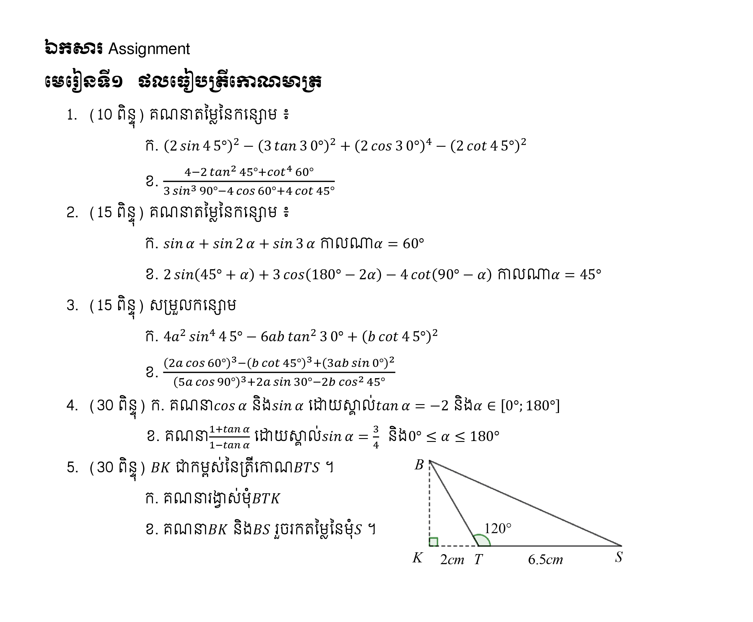 (ជ៦) មេរៀនទី១៖ (កិច្ចការផ្ទះ) ផលធៀបត្រីកោណមាត្រ