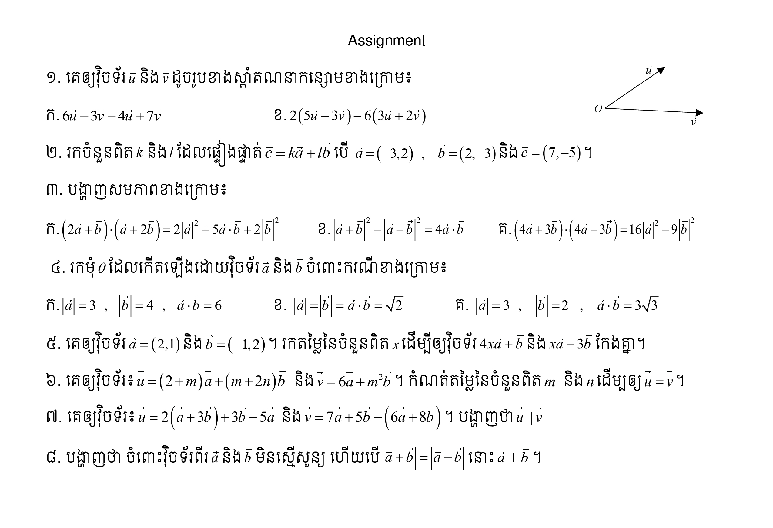 (ជ៩) មេរៀនទី១៖ (កិច្ចការផ្ទះ) វ៉ិចទ័រ និងប្រមាណវិធីលើវ៉ិចទ័រ
