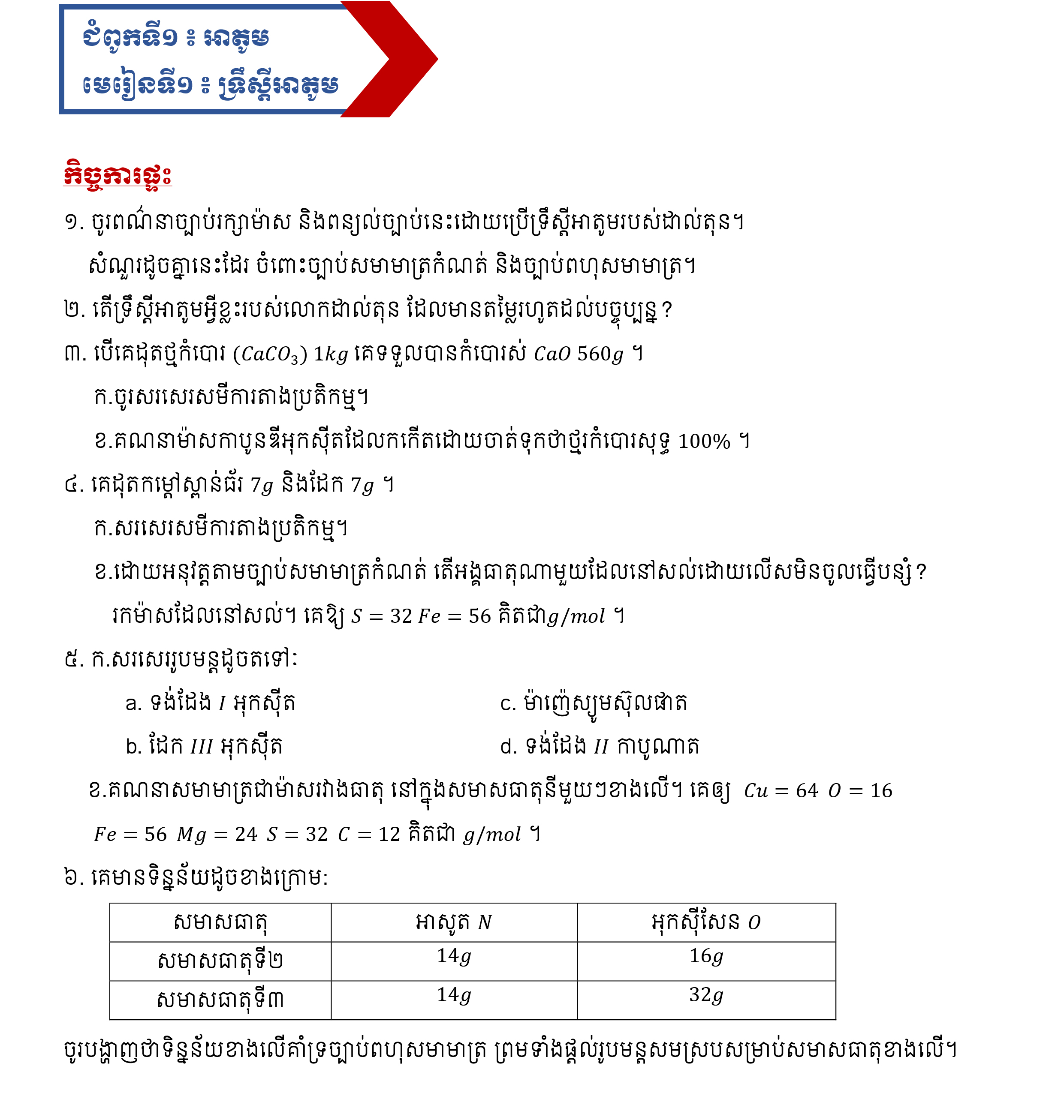 (ជ១)មេរៀនទី១៖ (កិច្ចការផ្ទះ) ទ្រឹស្តីអាតូម