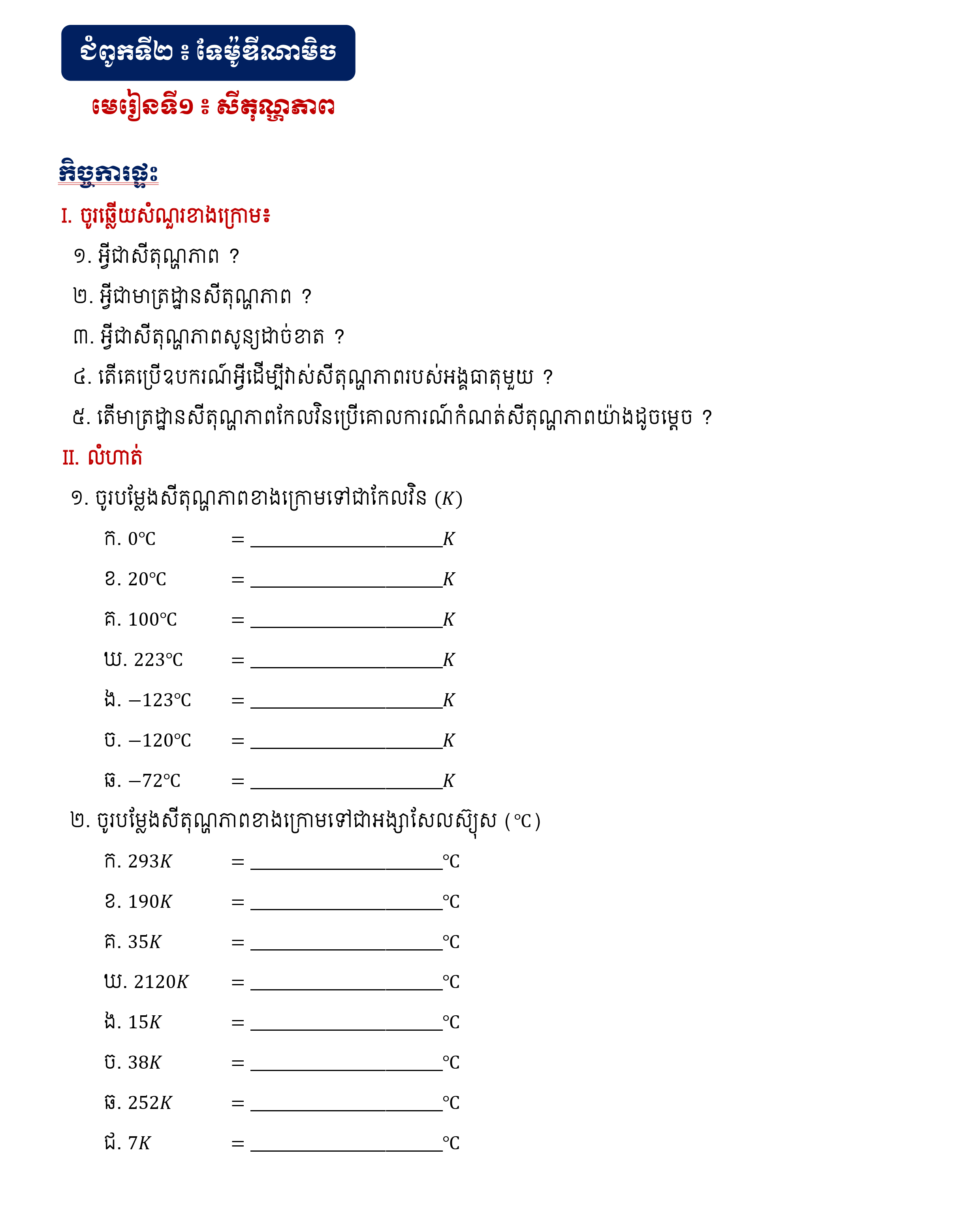 (ជ២)មេរៀនទី១៖ (កិច្ចការផ្ទះ) សីតុណ្ហភាព