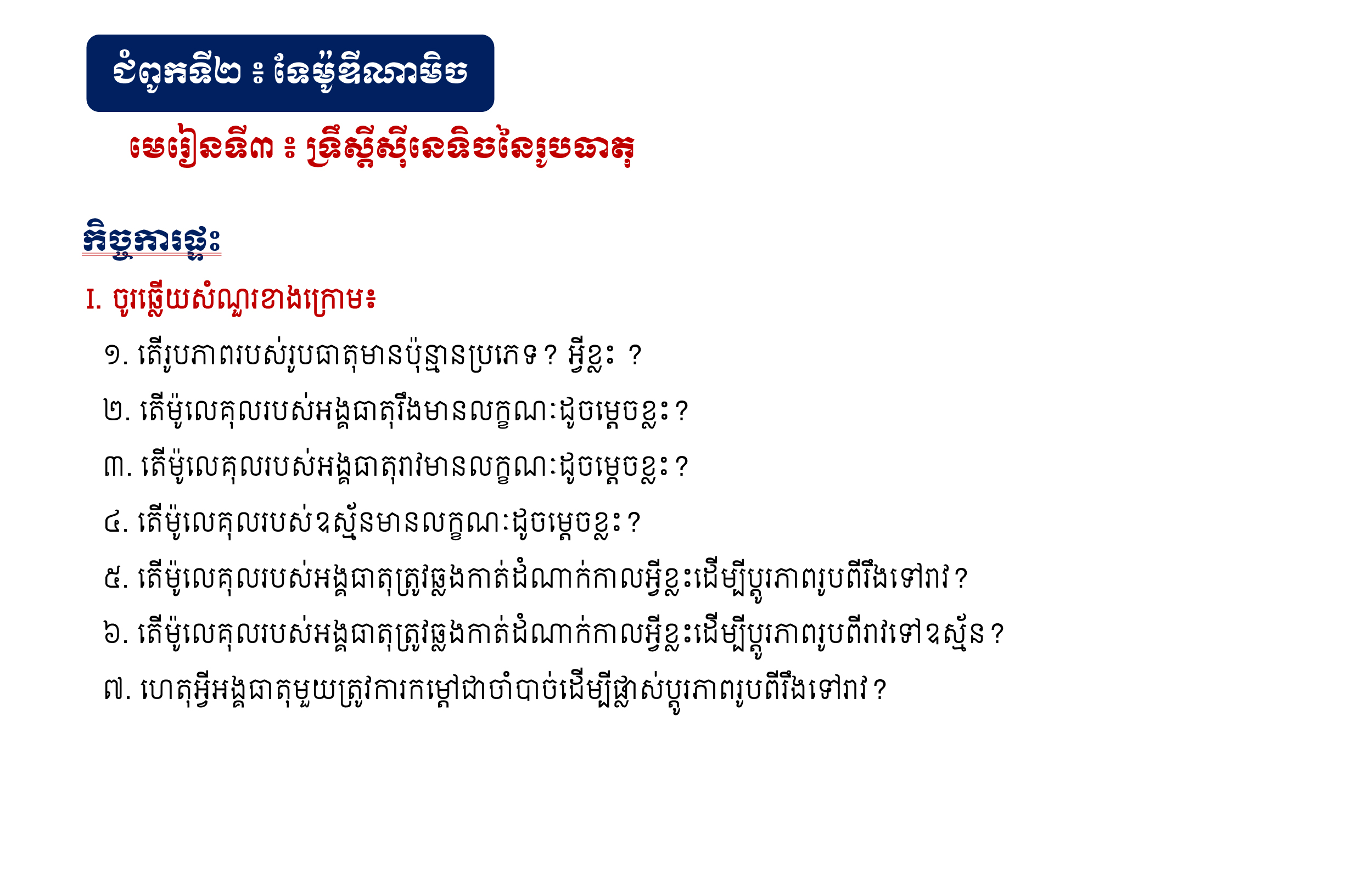 (ជ២)មេរៀនទី២៖ (វីដេអូសំណួរ & ចម្លើយ) ទ្រឹស្តីស៊ីនេទិចនៃរូបធាតុ