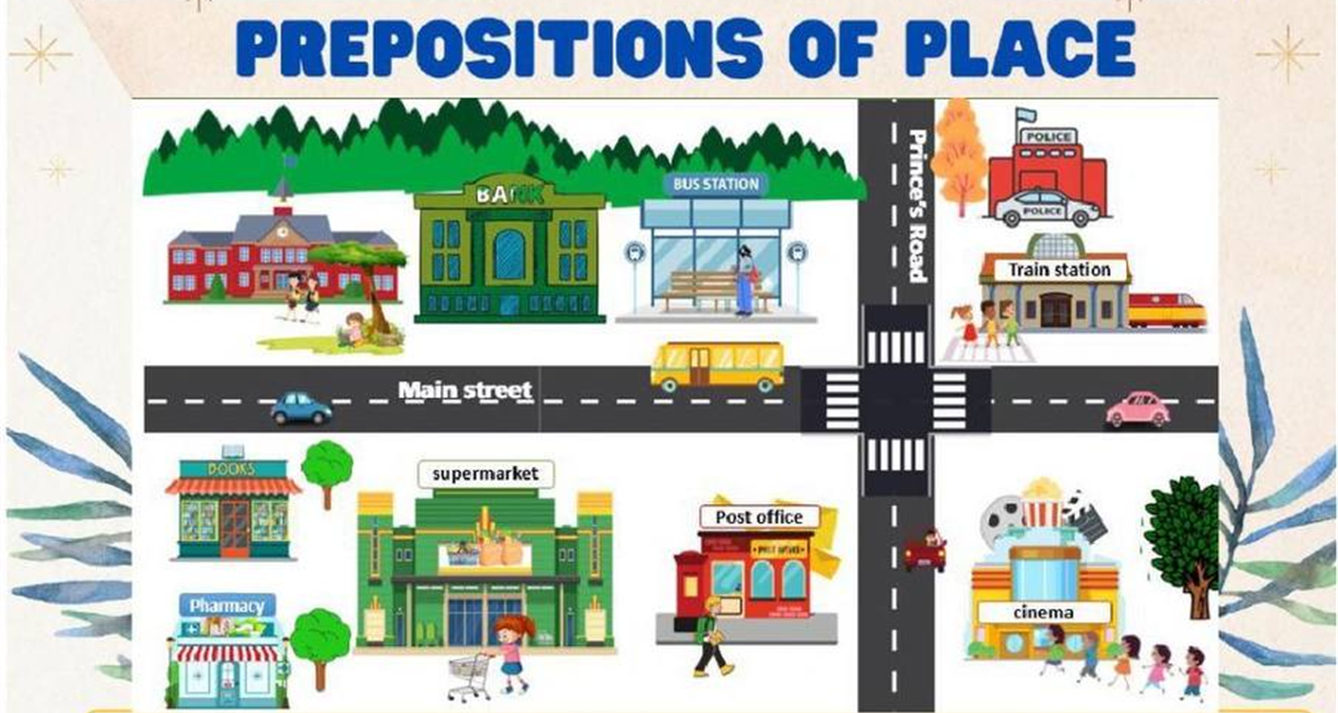 Look at the map and write the correct preposition of place.