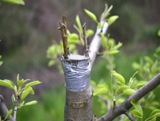 · កាត់ចុងត្រួយរបស់ដើមទម្រចោល · យកមែកដែលធ្វើការជ្រើសរើសរួចមកតភ្ជាប់ជាមួយដើមទម្រធ្វើយ៉ាងណាឱ្យត្រួតស៊ីគ្នា ។ · យកខ្សែមកចងភ្ជាប់កន្លែងត ដើម្បីឲ្យរុក្ខជាតិដុះភ្ជាប់គ្នា ។  |