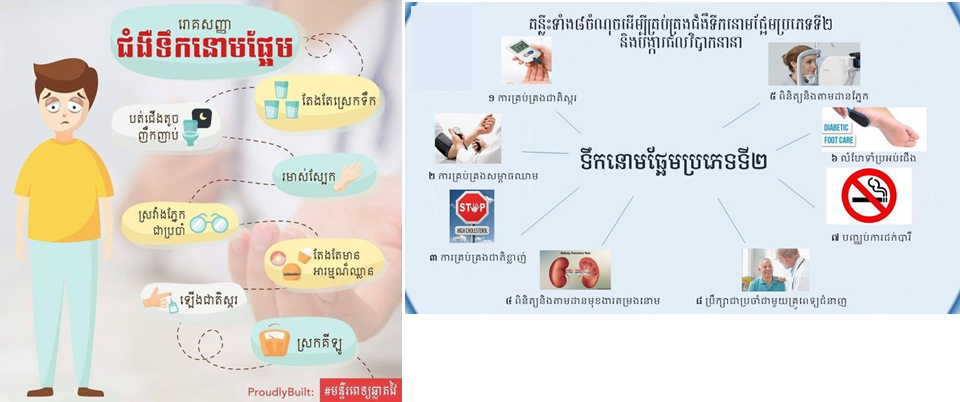 ជំងឺមិនឆ្លងមានជំងឺទល់លាមក ជំងឺរលាកក្រពះ ជំងឺខ្វះអាហារ ជំងឺធាត់ ជំងឺទឹកនោមផ្អែម ជំងឺបេះដូង ជំងឺសរសៃឈាម ជំងឺ មហារីក...។