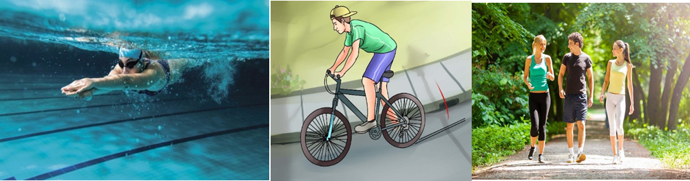 សកម្មភាពមួយចំនួនដូចជាការហែលទឹក ការជិះកង់ ការរត់ ការដើរកម្សាន្ដជាវិធីល្អមួយក្នុងការធ្វើលំហាត់ប្រាណ។