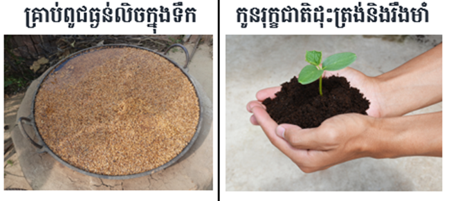 ជ្រើសរើសយកតែគ្រាប់ពូជដំណាំដែលធ្ងន់លិចក្នុងទឹកយកទៅដាំ។