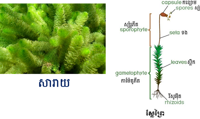 រុក្ខជាតិគ្មានសរសៃនាំចំនួនបីមាន ៖ ស្លែព្រៃ សារាយ ជន្ទល់ភ្នំ។
