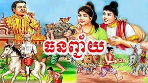 ឯធនញ្ជ័យក៏វិលទៅផ្ទះ ហើយយកខ្មៅដុសក្ដារ៤ជ្រុង ក្រដាស់ស និងគម្ពីរដែលឱ្យគេរក ហើយនឹងក្ដាមដែលដាក់ក្នុងក្អមទាំង៤នោះមក ហើយក៏យកក្ដាមដាក់ត្រង់កណ្ដាល ហើយយកថាសដាក់ទឹកខ្មៅ ដាក់គ្រប់ជ្រុងទាំង៥ ហើយយកក្រដាសក្រាលលើក្ដារ ហើយយកក្ដាមដាក់ក្នុងថាសទឹកខ្មៅឱ្យវាវារឡើងលើក្រដាស់នោះ។ ឯទឹកខ្មៅនៅប្រឡាក់នៅជើងក្ដាមវារនោះ ដិតជាប់នឹងក្រដាស់នោះច្រើន ហើយយកទៅហាលថ្ងៃ លុះធ្វើដូច្នោះ ឯងបានច្រើនហើយ ឱ្យយកគម្ពីរមករុំទុក ហើយយកក្រដាសមកដាក់ឱ្យក្ដាមវាវារលើជាច្រើនទៀត រួចហើយឱ្យយកក្ដារនិងទឹកខ្មៅទៅទុក ទើបឱ្យកូនក្មេងមកអង្គុយច្រើន ហើយយកក្រដាសមួយពុម្ពម្នាក់ៗ ឱ្យក្មេងអស់នោះទន្ទេញថាផ្ដេសផ្ដាស ទៅតាមតែក្មេងណាចង់ថាទៅ ឱ្យឮដូចក្មេងរៀនអក្សរសាស្រ្ដ ឯអ្នកប្រាជ្ញចិននោះ លុះដល់ព្រឹកឡើងហើយ ឡើងពីសំពៅមកផ្ទះធនញ្ជ័យ នឹងចោទប្រស្នា ឯធនញ្ជ័យមើលទៅឃើញអាចារ្យមកដល់ហើយ ក៏ដើរទៅទទួលចាប់ដៃចូលមកអង្គុយលើកៅអី ហើយធនញ្ជ័យឱ្យយកទឹកតែមកឱ្យអាចារ្យផឹក ឯក្មេងៗទាំងនោះក៏រៀនអក្សរឮកងរំពងនឹងស្ដាប់ភាសាគ្នាមិនបាន ឯអាចារ្យចិនឃើញអស់ក្មេងរៀនសំបុត្រហើយឱ្យយកទៅបកមើល មិនស្គាល់តួអក្សរដល់១សោះ ធនញ្ជ័យសួរថា អាចារ្យស្គាល់អក្សរនេះឬទេ។ អាចារ្យចិនថាទេ ទើបធនញ្ជ័យថា នេះគេហៅអក្សរមីងឆ្វេង អក្សរព្រាហ្មណ៍ចាម បើមិនស្គាល់ដូច្នេះនឹងឆ្លើយប្រស្នានឹងគ្នាមិនបានទេ អ្នកឯងចាញ់អញនឹងអក្សរនេះហើយ អាចារ្យចិនទទួលព្រម ធនញ្ជ័យថា បើចាញ់ហើយអញយកតែរបស់ក្នុងសំពៅទាំង៤ ឯសំពៅនោះ អញឱ្យវិលត្រឡប់ទៅស្រុកវិញ ឯនគរក៏អញថ្វាយទៅក្រុងចិនវិញដែរ។ តែអំពីថ្ងៃនេះ បើឮឈ្មោះធនញ្ជ័យ អ្នកប្រាជ្ញឱ្យខ្លាចគ្រប់ប្រទេសទៅ អាចារ្យចិនក៏ព្រមឱ្យរបស់ក្នុងសំពៅទាំង៤នោះ ហើយក៏បើកសំពៅទៅស្រុកចិនវិញ ឯធនញ្ជ័យកាលបើបានរបស់អំពីសំពៅទាំងបួននោះ ហើយ ឱ្យបញ្ជូនអស់ទ្រព្យនោះ ទៅថ្វាយព្រះបាទជាម្ចាស់ទាំងអស់ នឹងមានយកជារបស់ខ្លួនក៏ទេ។ ឯព្រះមហាក្សត្រ បានឮថាធនញ្ជ័យឈ្នះប្រស្នាអាចារ្យចិនដូច្នោះហើយ លុះដល់ឃើញធនញ្ជ័យឱ្យជញ្ជូនអស់របស់ទ្រព្យមកថ្វាយដូច្នោះ ក៏ត្រេកអរក្នុងព្រះហឫទ័យ ហើយមានព្រះបន្ទូលថា ធនញ្ជ័យឯងបានទុកខ្លះហើយឬទេ របស់ទាំងអស់នេះ ធនញ្ជ័យក្រាបទូលថា ទូលព្រះបង្គំពុំបានយកទុកទេ។[...]