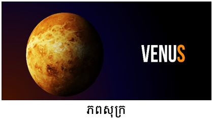 - ជាភពទីពីរដែលគេចាត់ទុកភពនេះជា«ភពបងប្អូនស្រី»ជាមួយនឹងភពផែនដីដោយសារតែភពទាំងពីរមានទំហំ ម៉ាស និងដង់ស៊ីតេប្រហាក់ប្រហែលគ្នា។ បរិយាកាសភពសុក្រសម្បូរទៅដោយឧស្ម័នកាបូនិចនាំឱ្យភពនេះមានសីតុណ្ហភាព 480 \( ^\circ\mathrm{C} \)និង ពេលត្រជាក់សីតុណ្ហភាព -38 \( ^\circ\mathrm{C} \)ដោយធ្វើដំណើរជុំវិញព្រះអាទិត្យមួយជុំត្រូវប្រើថេរវេលា 225 ថ្ងៃនៃផែនដី។