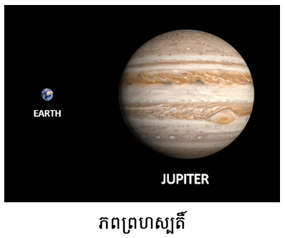 - ជាភពដែលមានទំហំធំជាងគេបង្អស់មានភពរណបច្រើនជាង65 បរិយាកាសសម្បូរដោយ អ៊ីដ្រូសែនវិលជុំវិញខ្លួនឯង លឿនជាងភពនានា ដោយមួយថ្ងៃនៅភពព្រហស្បតិ៍មានប្រមាណជា 10 ម៉ោងនៃភពផែនដី។ ភពនេះធ្វើដំណើរជុំវិញព្រះអាទិត្យមួយជុំ ត្រូវប្រើថេរវេលា ១១ឆ្នាំ ១០ខែ ១០ថ្ងៃនៃផែនដី។