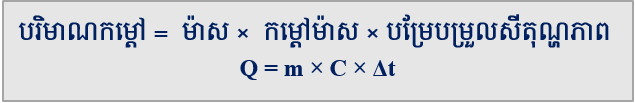 តាមរូបមន្ត : \( Q=m\times C\times \Delta t \)