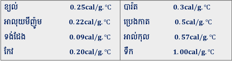 - ការគណនាបរិមាណកម្តៅកំណត់ដោយ :