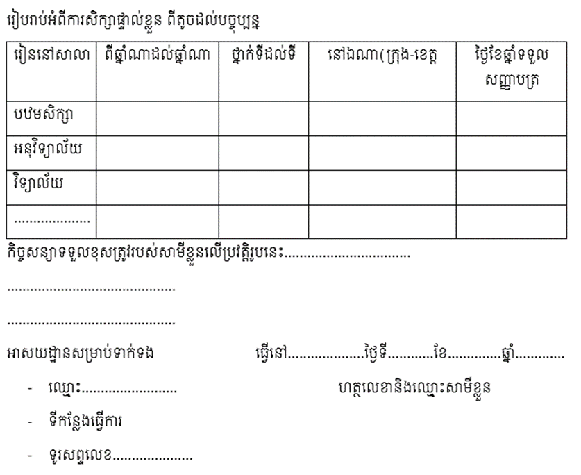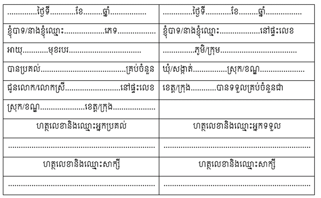 មេរៀនទី៩៖ (សង្ខេបមេរៀន) សំណេរ ៖ បំពេញលិខិតផ្សេងៗ