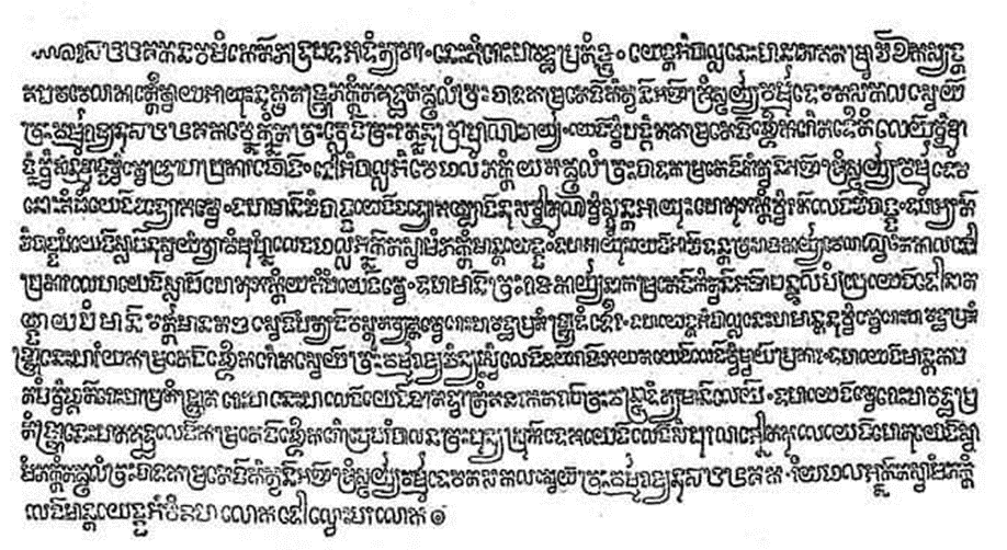 ៩៣៣ ឝកនវមី កេត ភទ្របទ អាទិត្យវារ0នេះគិ រោះហ វទ្ធប្រតិជ្ញា0 យេង្ដ អំបាល្លនេះហនា ភាគ តម្រ្វច ឯក (ទោ ត្រីណិ ចត្វារី) ស្យង្ដ ឝបថ វេលា កាត្តៃ ថ្វាយ អាយុះ នុកតជ្ញភក្ដីយេង តឝុទ្ធ តធូលី វ្រះបាទកម្រងតេងកំត្វនអញ ឝ្រីសូយ៌្យវម៌្មទេវ តសកលស្វេយ វ្រះធម៌្មរាជ្យនុ៩២៤ ឝក វ្នេក្និ តវ្រះវ្លេង វ្រះរត្ន នុវ្រាហ្មណាចាយ៌្យ0 យេង វ្វំបង្គំ តកម្រងតេងផ្ទៃករោំតទៃតិលេយ វ្វំខ្មាង្និ វ្វំសំនុខ្មាង្ង វ្វំថ្វេទ្រោហ ប្រការផោង0 នៅអំបាល្ល អំវេផល កតជ្ញភក្ដិ តធូលីវ្រះបាទកម្រងតេងកំត្វនអញ ឝ្រីសូយ៌្យវម៌្មទេវ នោះគិបិយេង ឧទ្យោគថ្វេ0 ទហមានចំបាង្ង យេងឧទ្យោគច្បាង នុសវ៌្វាត្មណា វ្វំស្ង្វន្ដ អាយុះ ហេតុ ភក្ដិ វ្វំរតលេងចំបាង្ង0 ទហអ្យត ចំបាង្ង បិយេងស្លាបនុ ស្វយំវ្យាធិ មុហ្និលេង ផល្លអ្នក តស្វាមិភក្ដិមាន្ដយេង្ង0 ទហ អាយុះ យេងអាចទន្ដ វ្រះរាជកាយ៌្យ វេលាល្វោះតកាល នៅប្រការលេហ យេង ស្លាប ហេតុភក្ដិយ គិបិយេងថ្វេ0 ទហមានវ្រះរាជកាយ៌្យ នាកម្រងតេងកំត្វនអញ បន្ទ្វលបិប្រេ យេងទៅនា តឆ្ងាយបិមាន វត៌្តមាន តឰ ស្វេងបិត្យង វស្ដុ តវ្យគ្ដ ថ្វេរោះហ វទ្ធប្រតិជ្ញា ទិទៃរ ទហ យេង្កអំបាល្លនេះហ មាន្ដនុ វ្វំថ្វេរោះហ វទ្ធប្រតិជ្ញានេះហ រីយកម្រតេងផ្ទៃករោំ ត ស្វេយវ្រះធម៌្មរាជ្យ ចំន្យរស្វំលេង ឧយ រាជភយ ត យេងលេង វ្វំ ម្វាយប្រការ0 ទហយេង មាន្ដ កបត បិវ្វំផ្គត រោះហ ប្រតិជ្ញាតរោះហ វទ្ធប្រតិជ្ញានេះហ តឝុទ្ធលេង៝ កម្រតេង៝ផ្ទៃករោំ ប្រេ បរិបាលន វ្រះបុន្យ ស្រុកទេឝយេង៝ លេងសំបូរណ អ្នៅត កុលេ យេងហេតុយេង ស្វាមិភក្ដិតធូលី វ្រះបាទកម្រងតេងកំត្វនអញ ឝ្រីសូយ៌្យវម៌្មទេវ តសកល ស្វេយវ្រះធម៌្មរាជ្យនុ ៩២៤ ឝក0 រីយផល អ្នក ត ស្វាមិភក្ដិ លេងមាន្ដយេង្ង អំវិ ឦហលោក ទៅល្វោះ បរលោក។ ( បញ្ជាក់៖ ឝ(श) ឞ(ष) ស(स) )