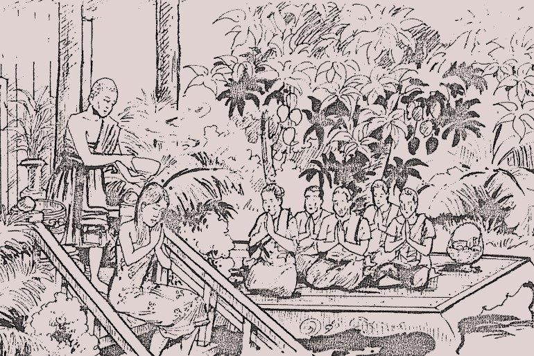 អត្ថបទនេះដកស្រង់ពី រឿង ផ្កាស្រពោន របស់លោក នូ ហាច បោះពុម្ពផ្សាយឆ្នាំ ១៩៦០ ទំព័រទី ៧០-៧៤។