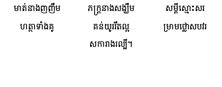 ក. ចក្ខុរូបារម្មណ៍៖ កវីប្រើពាក្យពេចន៍ទាក់ទាញហាក់ឃើញផ្ទាល់ភ្នែក។