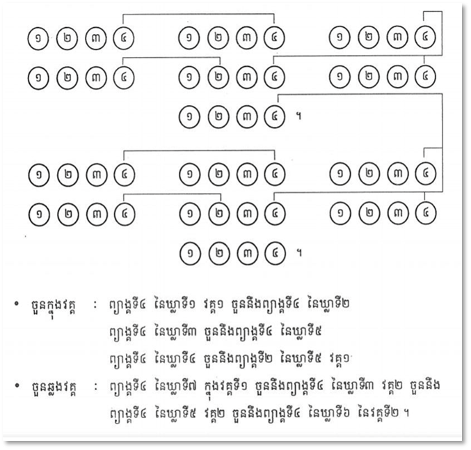 មួយវគ្គ មាន៧ឃ្លា និងមួយឃ្លាមាន៤ព្យាង្គ។