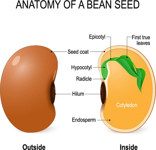 ចំពោះគ្រាប់រុក្ខជាតិខ្លះអាហាររបស់វាស្តុកទុកក្នុងកូទីឡេដុង។ រុក្ខជាតិខ្លះ អាហារស្តុកទុកនៅខាងក្រៅអំប្រ៊ីយ៉ុង។ រូបភាពទី5,4ប្រៀបធៀបទម្រង់ខុសៗគ្នានៃគ្រាប់ពោត សណ្តែក និងស្រល់។
