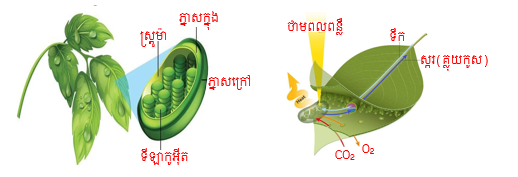 បរិយាកាស។ឧស្ម័នកាបូនិចដែលទទួលបានពីក្នុងខ្យល់ចូលក្នុងស្លឹកតាមរយៈស្តូម៉ាតនៅខាងក្រោមផ្ទៃនៃស្លឹករុក្ខជាតិ។