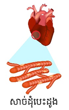 សាច់ដុំបេះដូងមានតែនៅក្នុងបេះដូង ។ វាមានលក្ខណៈជាសាច់ដុំរលីងផង និងសាច់ដុំជាប់ឆ្អឹងផង ហើយវាធ្វើការមិនចេះនឿយហត់ទេ ។ វាដូចសាច់ដុំរលីងព្រោះវាជាសាច់ដុំអឆន្ទៈ ហើយដូចសាច់ដុំជាប់ឆ្អឹងព្រោះសាច់ដុំបេះដូងជា សាច់ដុំឆ្នូត ។ វាអាចកន្ត្រាក់បានប្រហែល ៧០ដងក្នុងមួយនាទី ។