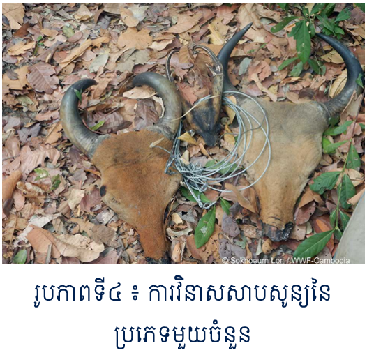 ធនធានធម្មជាតិរួមមាន ពន្លឺព្រះអាទិត្យ ខ្យល់ ទឹក រ៉ែ ដី សត្វ ព្រៃឈើ និងផូស៊ីលឥន្ធនៈ។ ធនធានធម្មជាតិចែកចេញជាពីរ គឺធានធានធម្មជាតិកកើតឡើងវិញ និងធនធានមិនកើតឡើងវិញ។ បើយើងខ្ជះខ្ជាយនិងមិនយកចិត្តទុកដាក់ចំពោះបរិមាណនៃការប្រើប្រាស់ធនធានធម្មជាតិដែលមិនកើតឡើងវិញ។ ក្នុងរយៈពេល ១០០ឆ្នាំ ទៅ ២០០ឆ្នាំទៀត យើងនឹងអស់រលីងតែម្តង។ ការបំពុល គឺជាការធ្វើឱ្យកង្វក់ ខូចគុណភាព ឬធ្វើឱ្យមានការប្រែប្រួលមិនល្អនៃលក្ខណៈរូប លក្ខណៈគីមី និងលក្ខណៈជីវៈចម្រុះរបស់បរិស្ថាន។ ការបំពុលកើតមានដោយផ្ទាល់ ឬដោយប្រយោល បណ្តាលមកពីសកម្មភាពឧស្សាហកម្ម កសិកម្ម ការដឹកជញ្ជួន និងនគរូបនីយកម្មដែលជាប្រភពនៃផ្សែងពុល សំណល់រឹង រាវ វិទ្យុសកម្ម ទឹកសំអុយ ថ្នាំសម្លាប់សត្វល្អិត សំឡេង រំញ័រ។ល។ ការវិនាសសាបសូន្យមានន័យថា សមាជិកចុងក្រោយគេបង្អស់នៃប្រភេទនីមួយៗបានស្លាប់ផុតពូជទៅហើយ។ ប្រភេទភាគច្រើនដែលកំពុងវិនាសសាបសូន្យ ព្រោះតែជម្រកធម្មជាតិរបស់វាកំពុងទទួលរងការបំផ្លិចបំផ្លាញដោយការកាប់ព្រៃឈើ សង្គ្រាម ការរុករានទន្ទ្រានសំបុកជម្រក ការដាក់ថ្នាំបំពុលសត្វ និងការបរបាញ់ខុសច្បាប់ជាដើម។