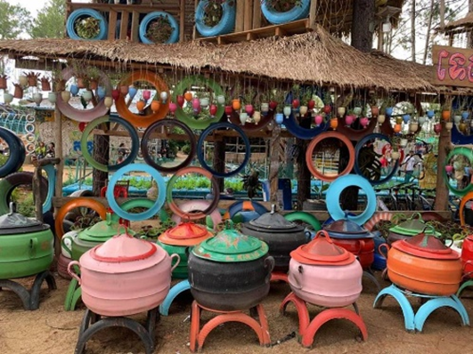 នៅសាលារៀនសិស្សានុសិស្សកែច្នៃដបទឹកសុទ្ធទៅជាថូផ្កា