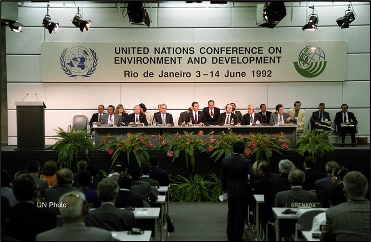 នៅឆ្នាំ 1992 មានកិច្ចប្រជុំកំពូលមួយបានរៀបចំឡើងនៅទីក្រុង រីយ៉ូដឺសានេរ៉ូ ប្រទេសប្រេស៊ីល មានរយៈពេល 12 ថ្ងៃ មានប្រទេសចំនួន 118 បានចូលរួម ស្ដីពី បរិស្ថាន និងការអភិវឌ្ឍ