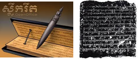 · ឯកសារសរសេរ ៖ គេសរសេរនៅលើសិលាចារឹក និងសាស្ត្រាស្លឹករឹត។