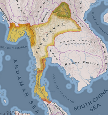 • អាណាចក្រថាទង ស្ថិតនៅតាមដងទន្លេស៊ីតង់ភាគខាងក្រោម។