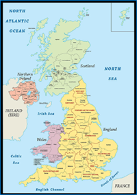 - ប្រទេសអង់គ្លេស លាតសន្ធឹងលើកោះមួយក្រុមដែលស្ថិតនៅប៉ែកខាងលិចនៃទ្វីបអឺរ៉ុប។