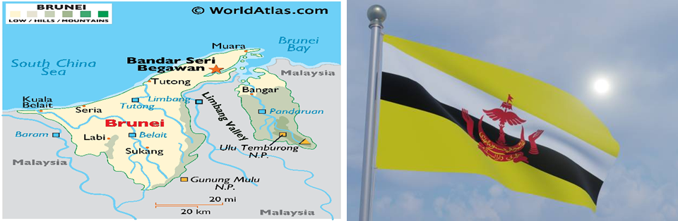 សង្កេតរូបភាព៖ ផែនទី និងទង់ជាតិប្រទេសព្រុយណេ