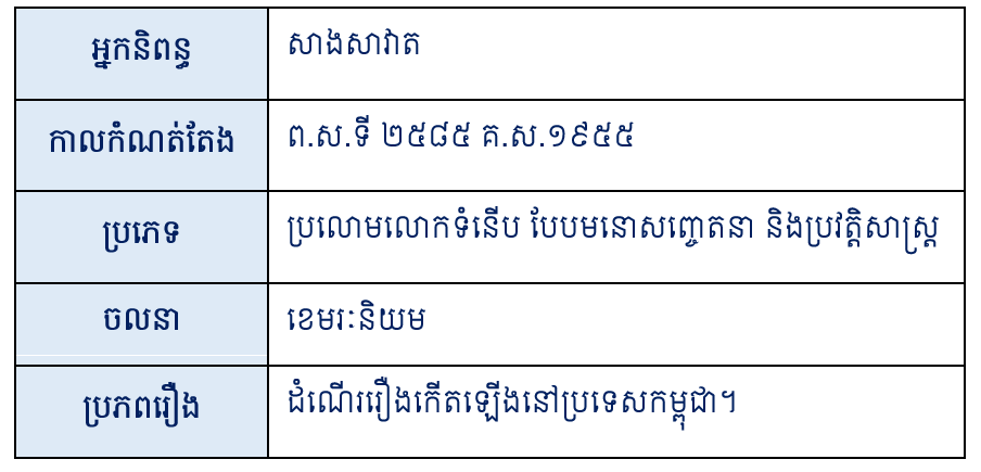 រឿងនេះកើតឡើងនៅក្នុងបរិយាកាសសង្គមមួយដែលប្រទេសកម្ពុជា កំពុងស្ថិតក្នុងស្ថានភាពសង្រ្គាមនៅតាមព្រំប្រទល់ខ្មែរ-ថ្ងៃ ។ ដំណើររឿងប្រព្រឹត្តទៅដោយបង្ហាញពីទឹកចិត្តស្នេហាជាតិ ការហ៊ានតស៊ូពលីជីវិតសាច់ស្រស់ឈាមស្រស់ ជាមួយពួកចោរសៀមដែលឈ្លានពាន ទន្រ្ទានយកដីខ្មែរមួយចំនួនតាមព្រំដែន។