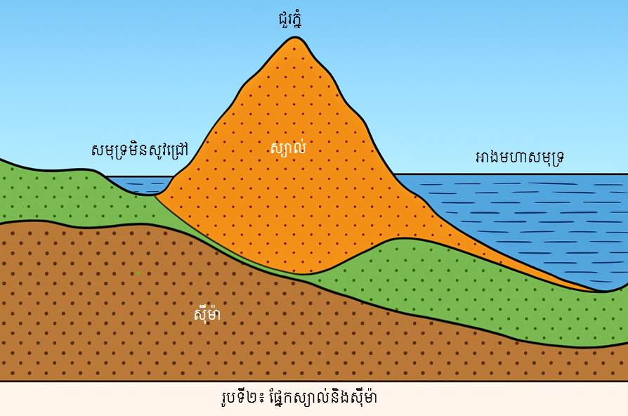 ផ្នែកទីពីរជាផ្នែកដែលមានសិលាបាសាល់ កើតឡើងពីសិលាម៉ាក់ម៉ា សម្បូរដោយធាតុបង្ក ស៊ីលីស្យូម អុកស៊ីសែន ម៉ាញ៉េស្យូម និងដែកហៅថា«ស៊ីម៉ា» ដែលមានដង់ស៊ីតេ 3.00g/cm3 ឡើងទៅ។ ស៊ីម៉ាមានតួនាទីបង្កើតឱ្យមានភាពសមលំនឹងនៃសំបកផែនដី មានន័យថាស៊ីម៉ាក្រាស់ស្ថិតនៅក្រោមស្យាល់ស្ដើង ហើយស៊ីម៉ាស្ដើងស្ថិតនៅក្រោមស្យាល់ក្រាស់។ ផ្នែកទីពីរនេះមានឈ្មោះថា ស៊ីម៉ា ហើយចលនារង្វល់ស៊ីម៉ាខាប់យឺតៗដែលវិលពីស្នូលផែនដីមកប៉ះផ្នែកក្រោមនៃសំបកផែនដី ហើយរុញភាគស៊ីម៉ាដែលក្ដៅខ្លាំងមកលើរួចវិលចុះទៅក្រោមវិញ។ ចលនានេះ អាចបណ្តាលឱ្យមានបាតុភូតពីរយ៉ាង គឺបន្ទុះភ្នំភ្លើង និងការរំកិលទ្វីបតាមខ្សែដេក។
