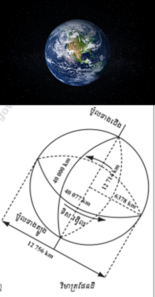 · កាំពីផ្ចិតទៅអេក្វាទ័រ 6 378 km