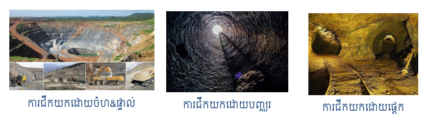 ក្នុងការជីកយករ៉ែមកប្រើប្រាស់ គេប្រើវិធីសាស្រ្តដូចជា