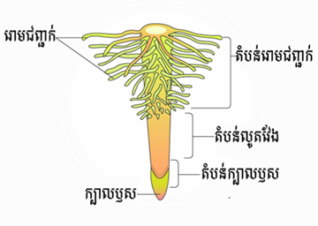 + តំបន់រោមជញ្ជក់ : ស្រូបយកទឹក និងអំបិលខនិជពីដី។