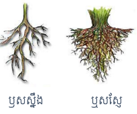 - ឫសចែកចេញជាពីរប្រភេទគឺ :