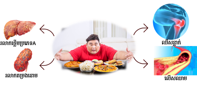 - វិបត្តិលើសអាហារ : បណ្ដាលឱ្យកើតជំងឺធាត់ មានបញ្ហាថ្លើម តម្រងនោម លើសឈាម ឈឺសន្លាក់។