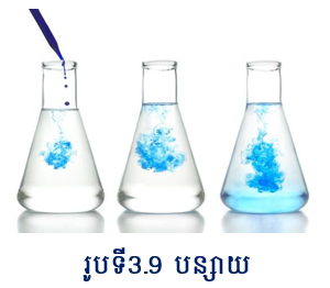 ឧទាហរណ៍ :  បើយើងបន្តក់ថ្នាំខៀវទៅក្នុងកែវទឹកមួយ បន្តិចក្រោយមកយើងសង្កេតឃើញទឹកក្នុងកែវ ប្តូរពណ៌ខៀវទាំងអស់។  ម៉ូលេគុលទឹកថ្នាំខៀវបានសាយទៅក្នុងទឹក។