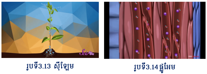 + ចូល: ទឹកចូលក្នុងឫសតាមអូស្មូស រីឯអំបិល ខនិជចូលឫសតាមបន្សាយ។