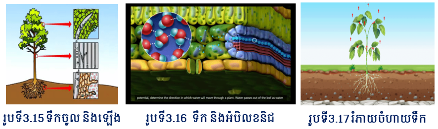 + ឡើង : ទឹកនិងអំបិលខនិជឡើងតាមដើមដោយកម្លាំងស្រូប។