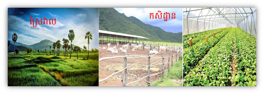 កសិដ្ឋានបីបួន ។ សម្គាល់ នៅភូមិភាគខ្លះលំនៅដ្ឋានជនបទមានទិដ្ឋភាពចម្រុះ