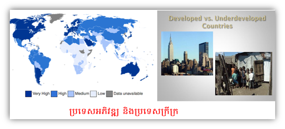 «ប្រទេសកំពុងអភិវឌ្ឍ» ។ ប្រទេសអភិវឌ្ឍភាគច្រើនស្ថិតនៅតំបន់ត្រជាក់បង្គួរនៃអឌ្ឍគោលខាងជើង
