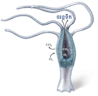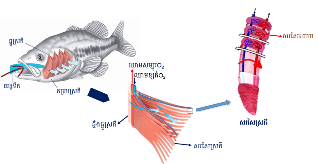 បណ្តូរឧស្ម័នប្រព្រឹត្តទៅតាមបន្សាយរវាងកោសិកាទាំងពីរស្រទាប់នៃសារពាង្គកាយ និងមជ្ឈដ្ឋាន (ទឹក) ។